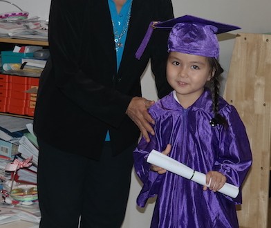 После длительных летних (по австралийскому времени) каникул сын вернулся из Казахстана и привез кучу подарков и гостинцев. Больше всего, конечно, повезло Софие. Апашка передала красивый казахский национальный костюм. Шапка просто роскошна с ее косами.